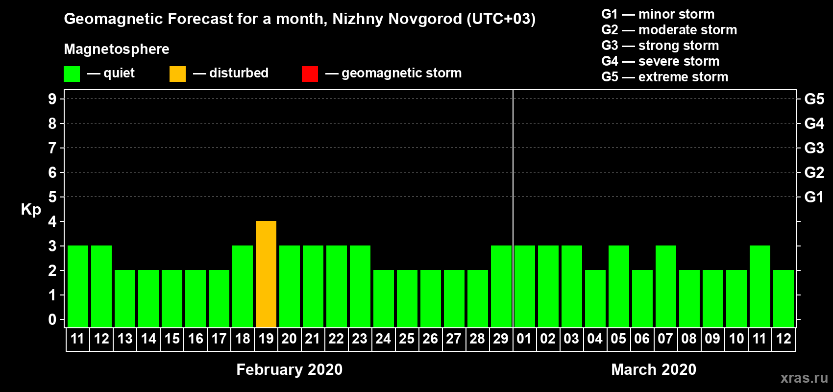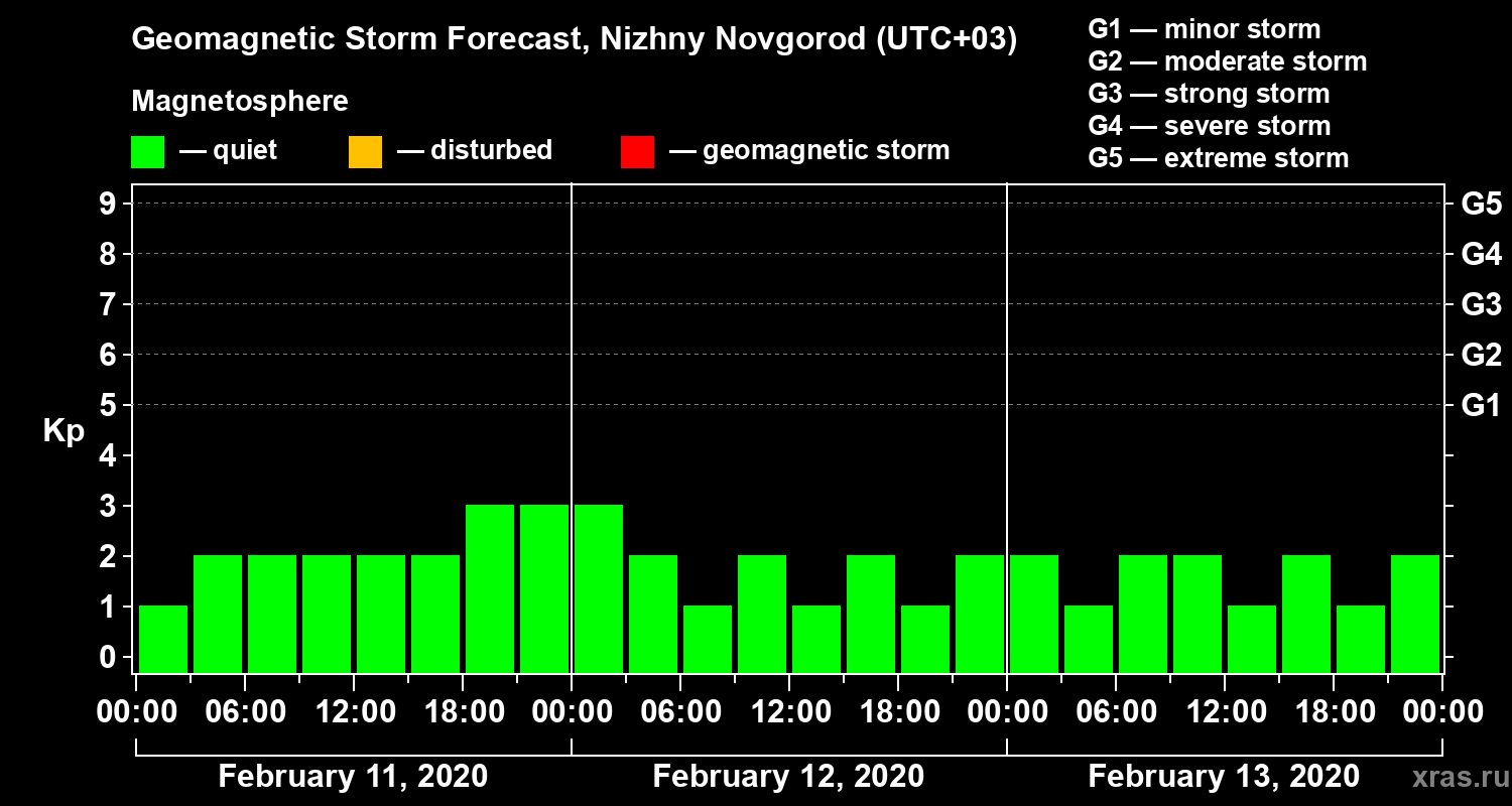 Geomagnetic activity forecast in Nizhny Novgorod — Feb 11, 2020