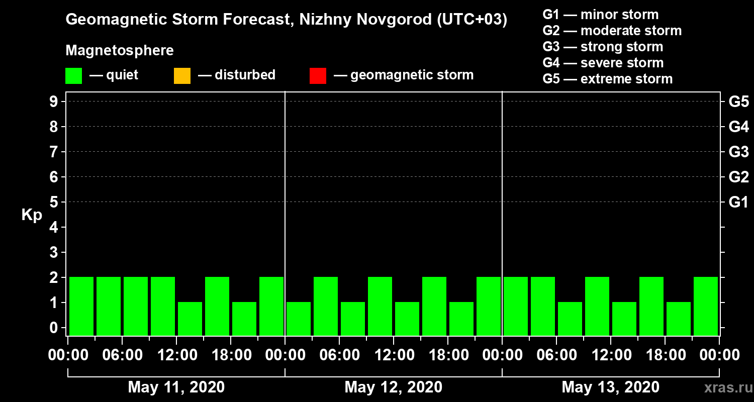 Geomagnetic activity forecast in Nizhny Novgorod — May 11, 2020