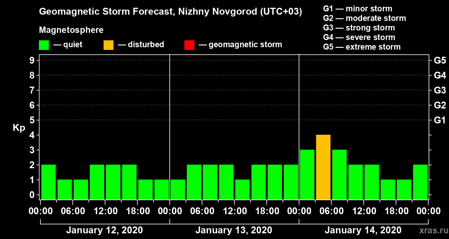 Geomagnetic activity forecast in Nizhny Novgorod — Jan 12, 2020