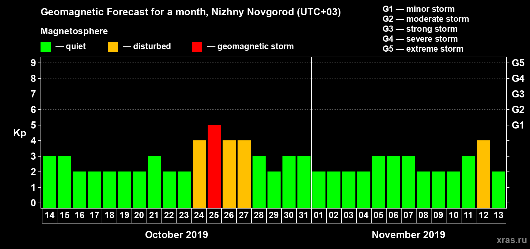 Geomagnetic activity forecast in Nizhny Novgorod — Oct 14, 2019