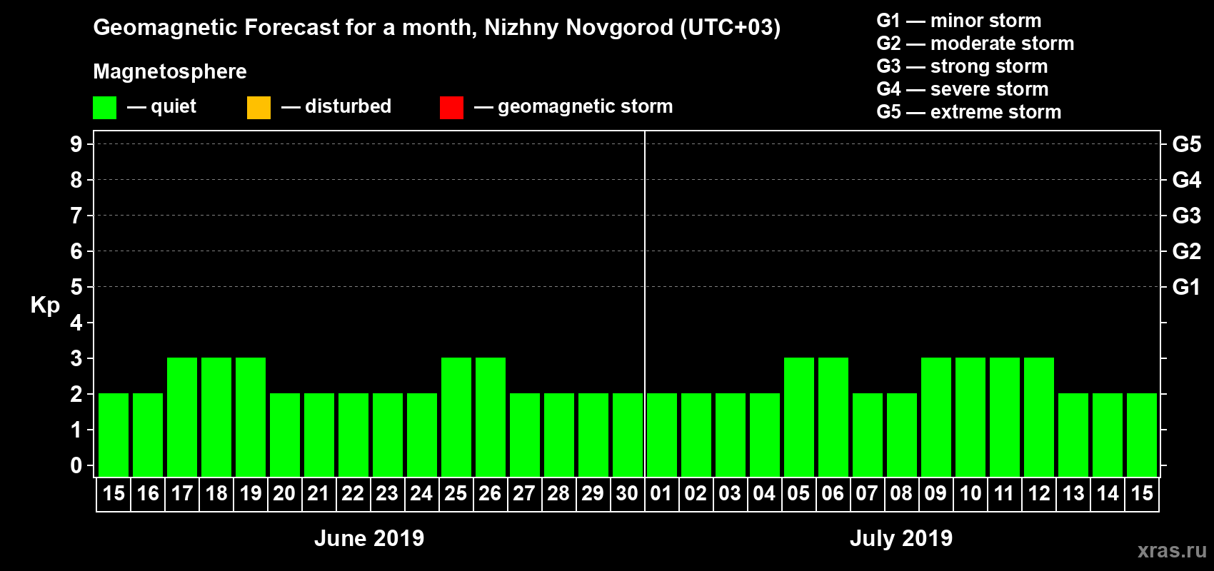 Geomagnetic activity forecast in Nizhny Novgorod — Jun 15, 2019
