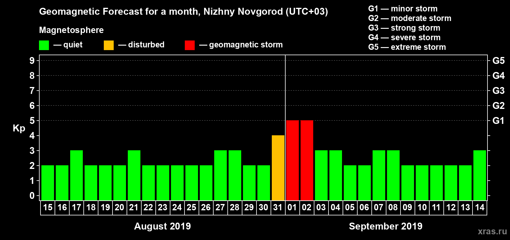 Geomagnetic activity forecast in Nizhny Novgorod — Aug 15, 2019