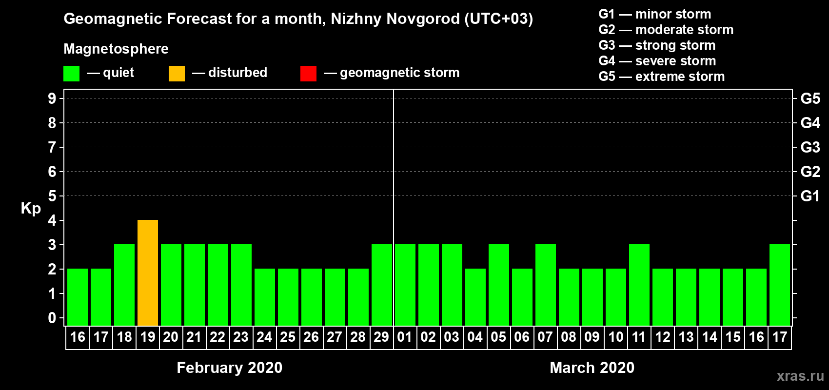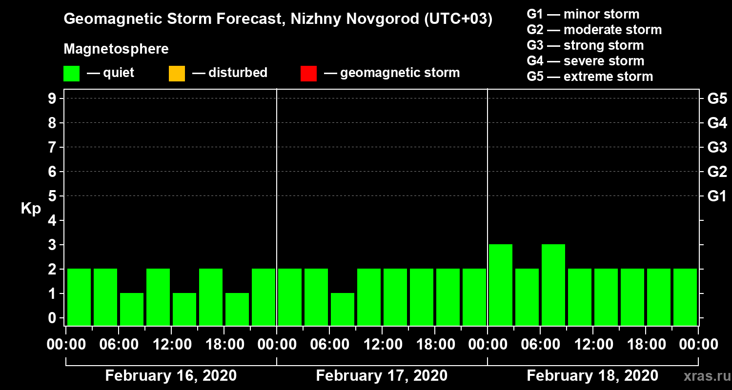 Geomagnetic activity forecast in Nizhny Novgorod — Feb 16, 2020