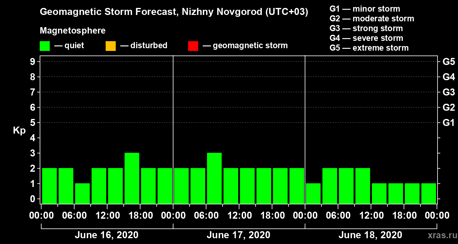 Geomagnetic activity forecast in Nizhny Novgorod — Jun 16, 2020