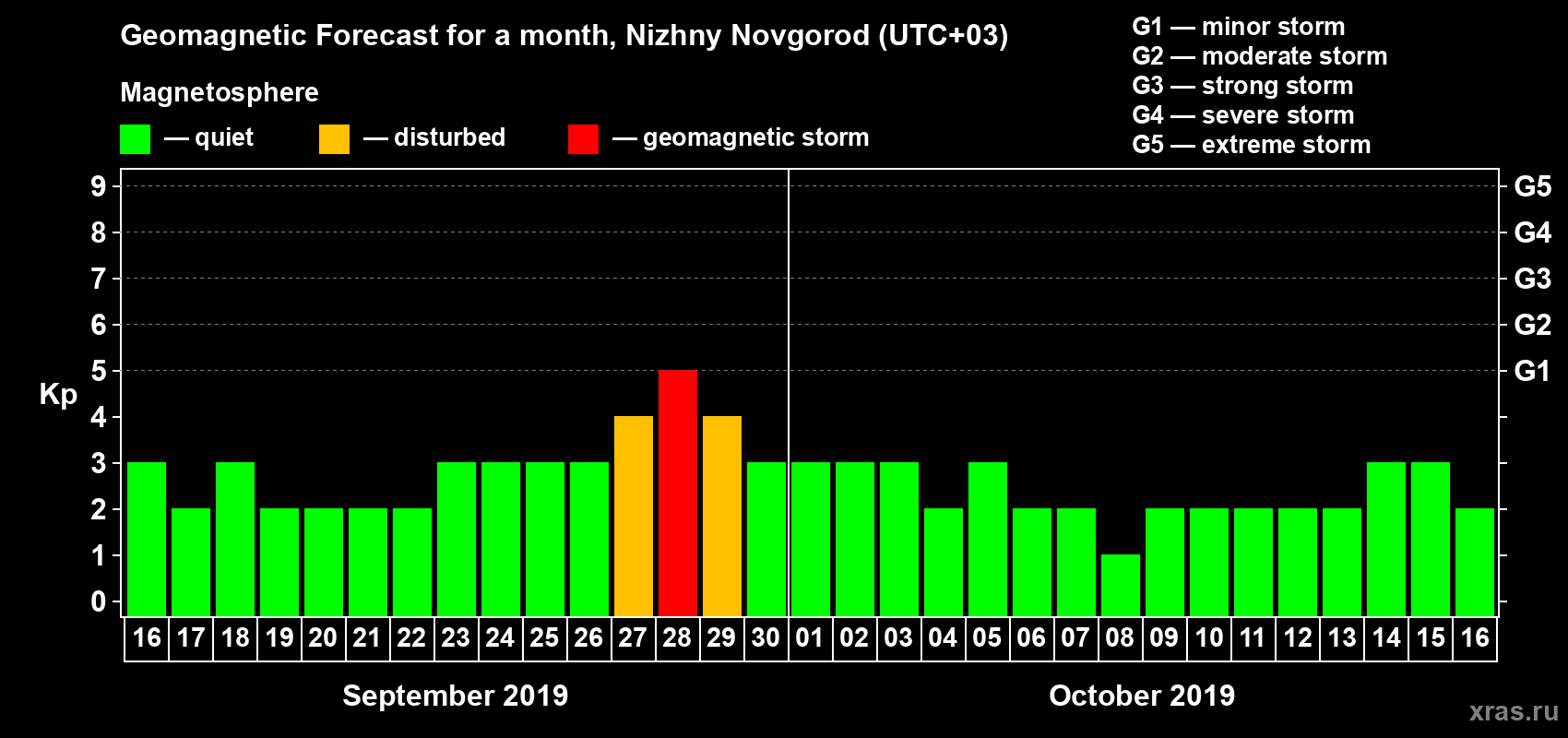 Geomagnetic storm forecast in Nizhny Novgorod for Sep 16, 2019