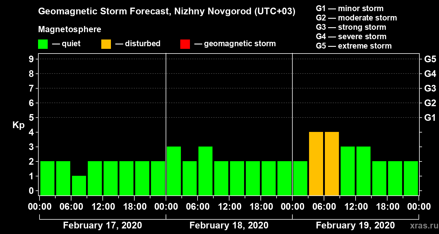 Geomagnetic activity forecast in Nizhny Novgorod — Feb 17, 2020