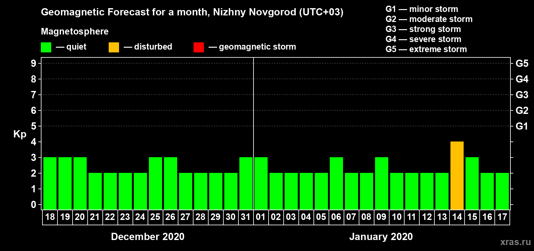 Geomagnetic activity forecast in Nizhny Novgorod — Dec 18, 2019