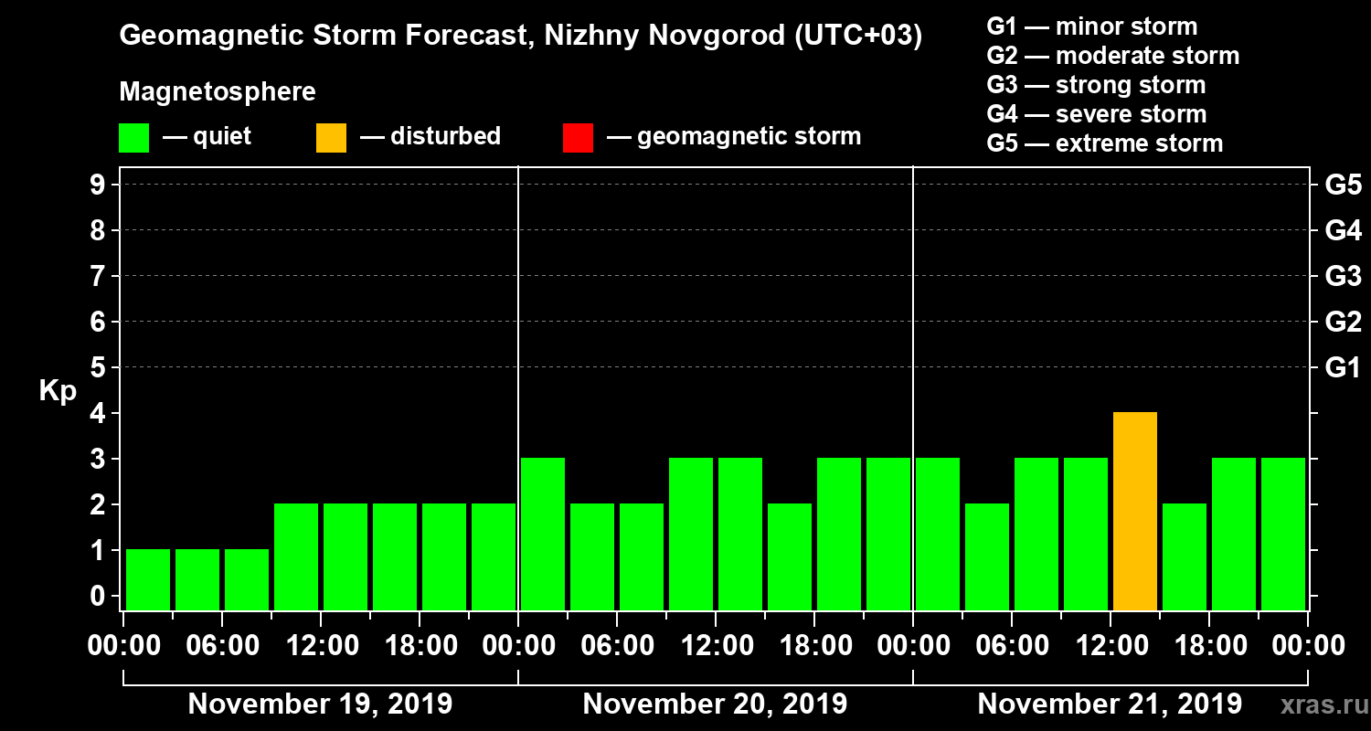 Geomagnetic activity forecast in Nizhny Novgorod — Nov 19, 2019