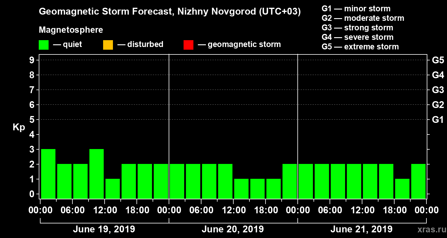 Geomagnetic activity forecast in Nizhny Novgorod — Jun 19, 2019