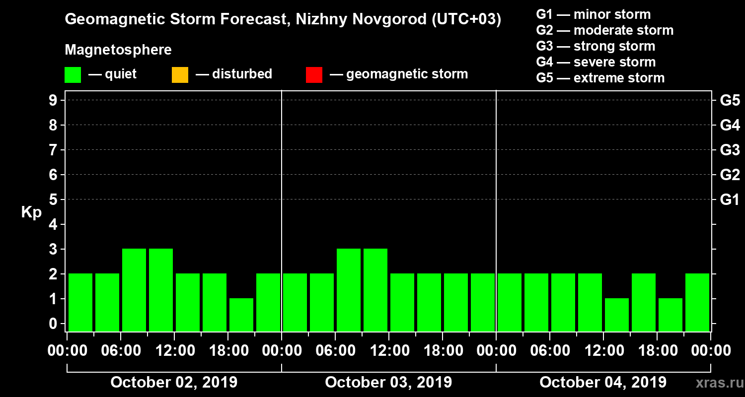 Geomagnetic activity forecast in Nizhny Novgorod — Oct 02, 2019
