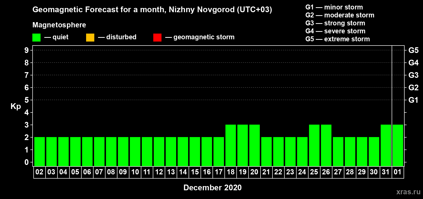 Geomagnetic activity forecast in Nizhny Novgorod — Dec 02, 2019