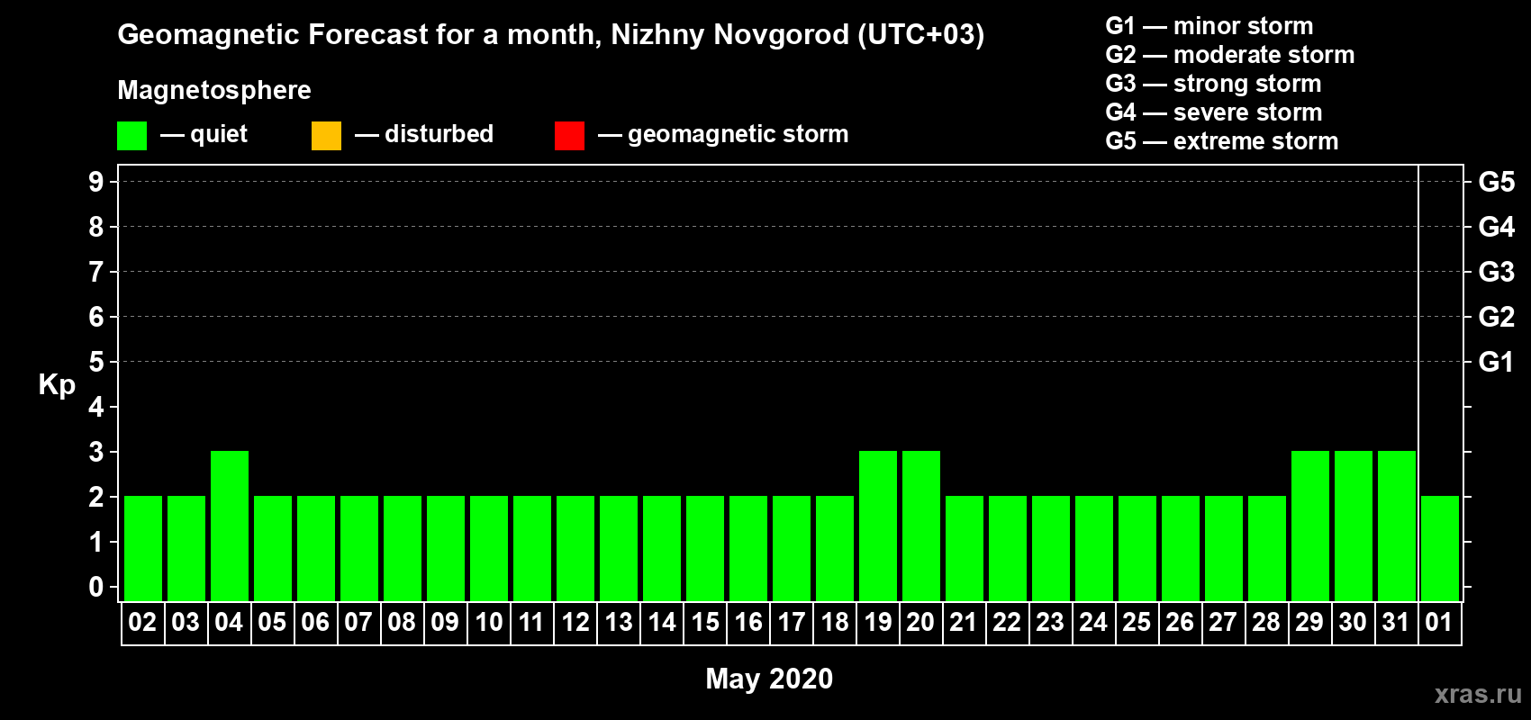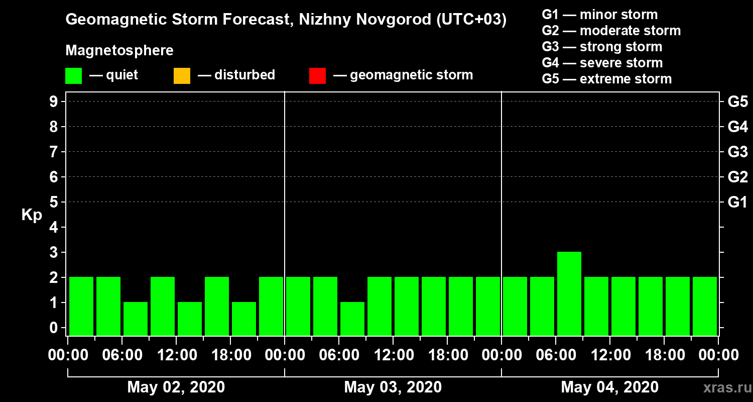 Geomagnetic activity forecast in Nizhny Novgorod — May 02, 2020