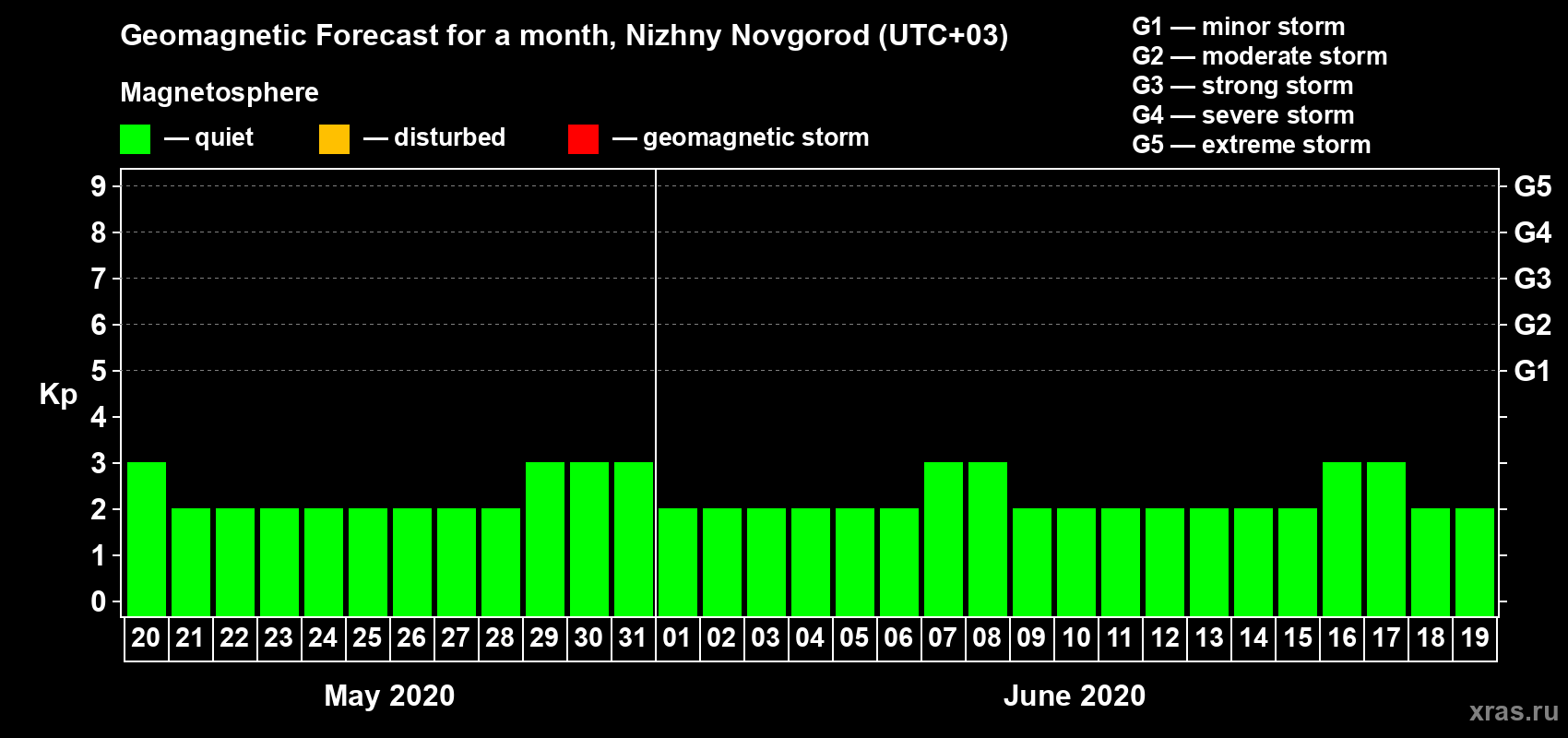 Geomagnetic activity forecast in Nizhny Novgorod — May 20, 2020