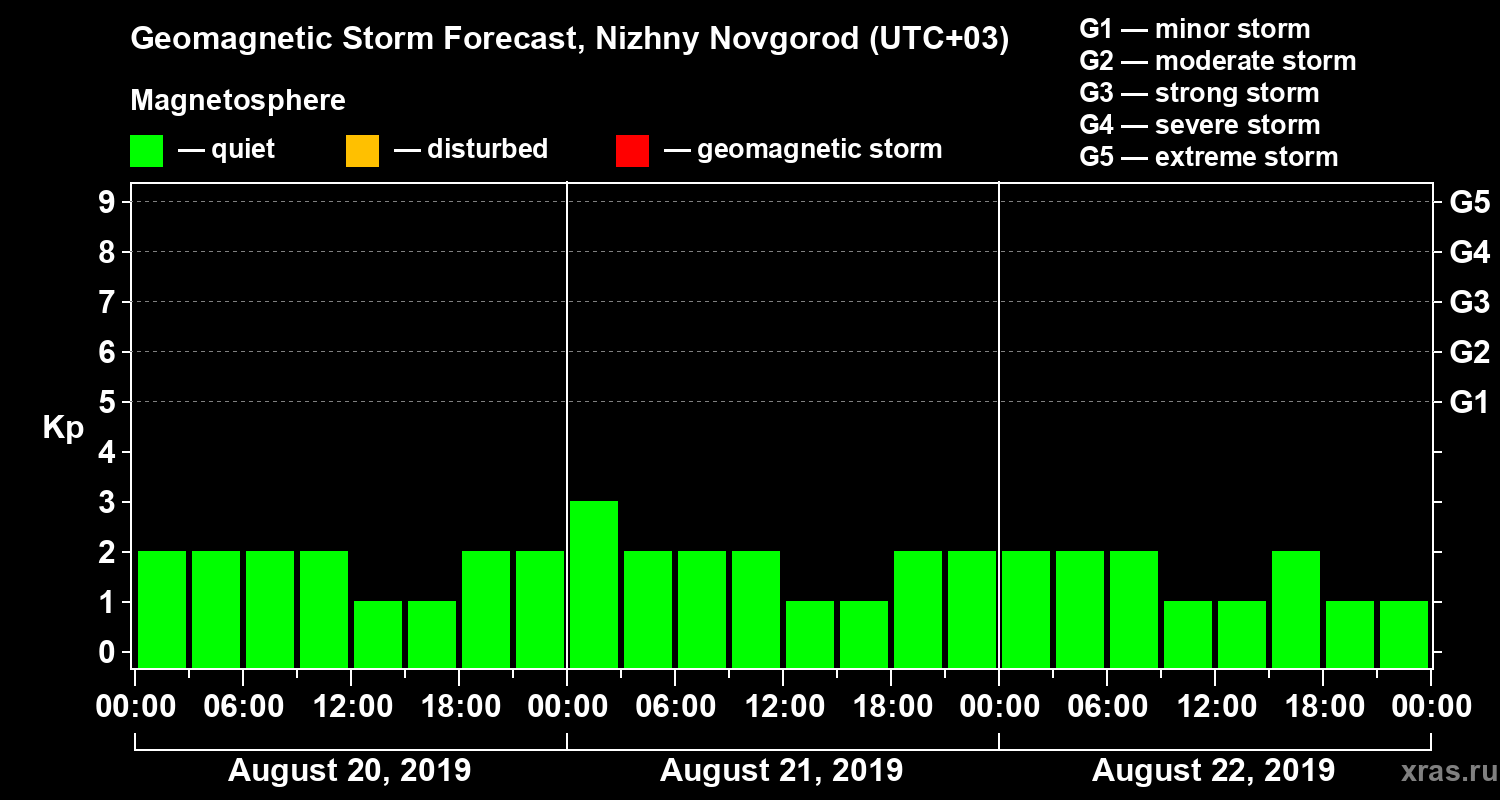 Geomagnetic activity forecast in Nizhny Novgorod — Aug 20, 2019
