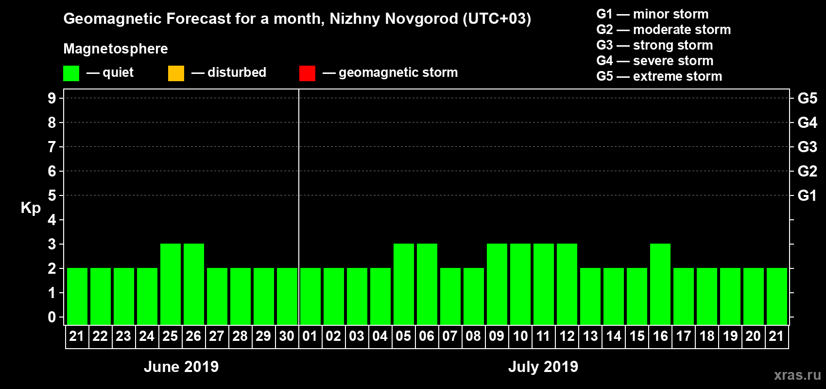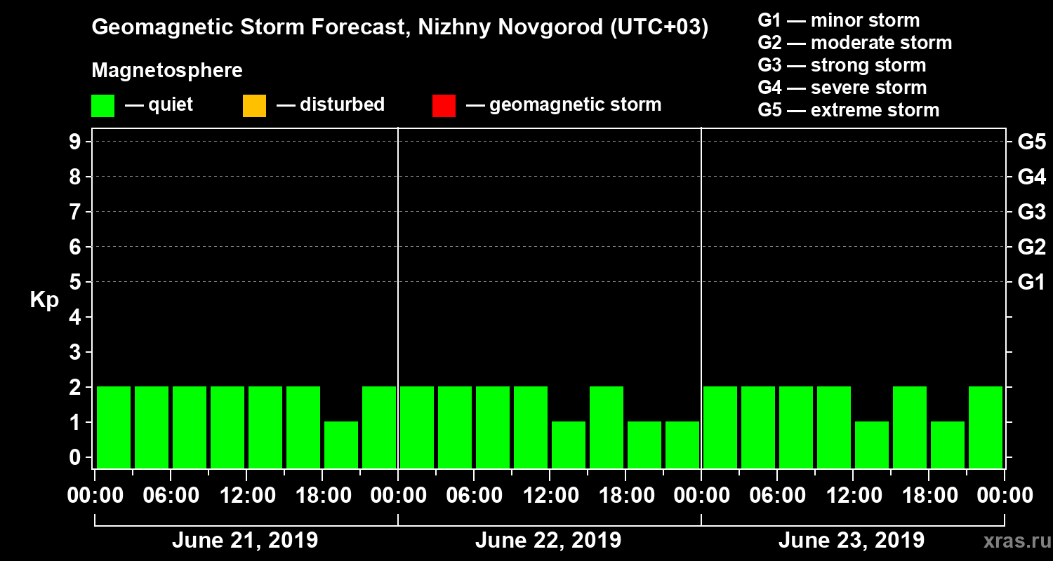 Geomagnetic activity forecast in Nizhny Novgorod — Jun 21, 2019