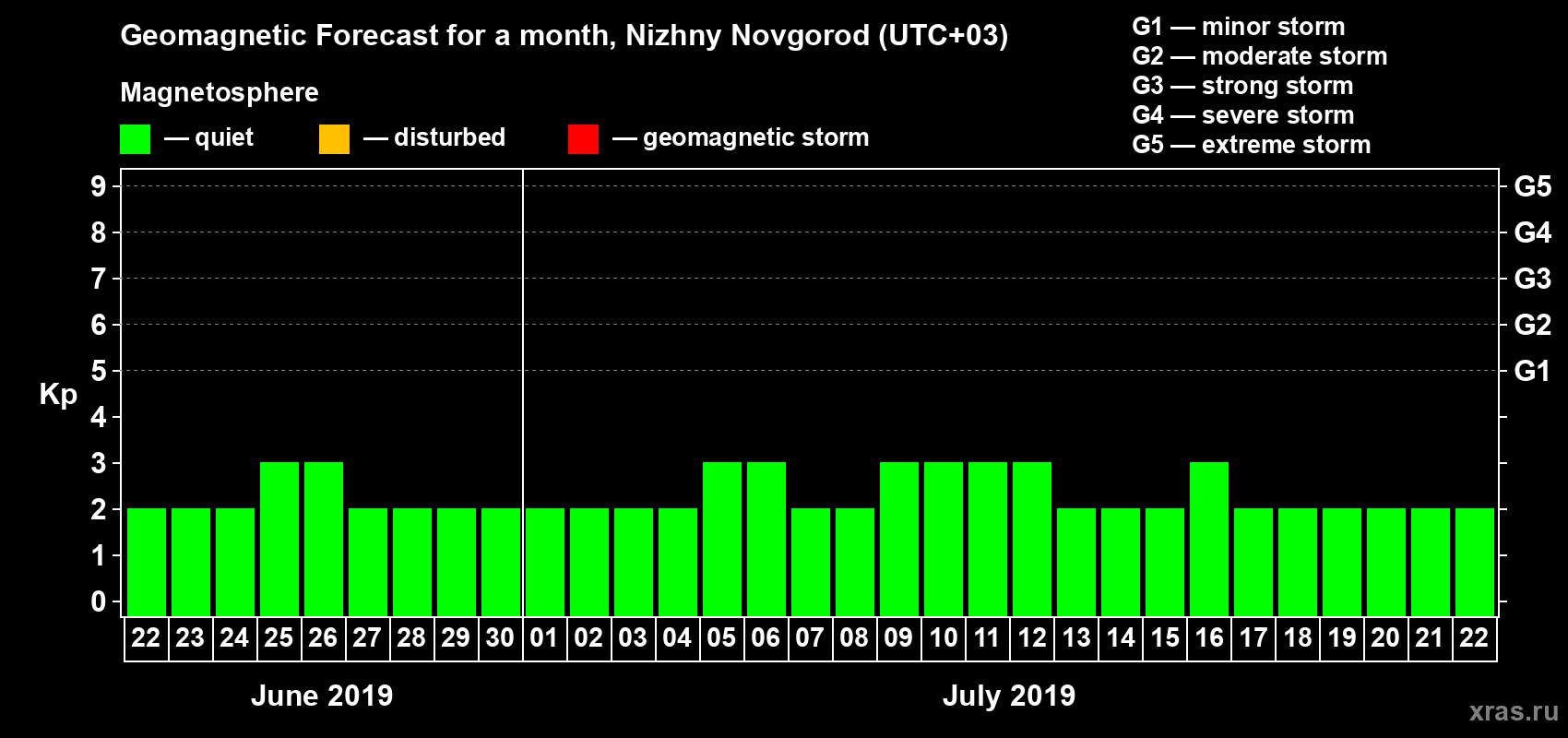 Geomagnetic activity forecast in Nizhny Novgorod — Jun 22, 2019