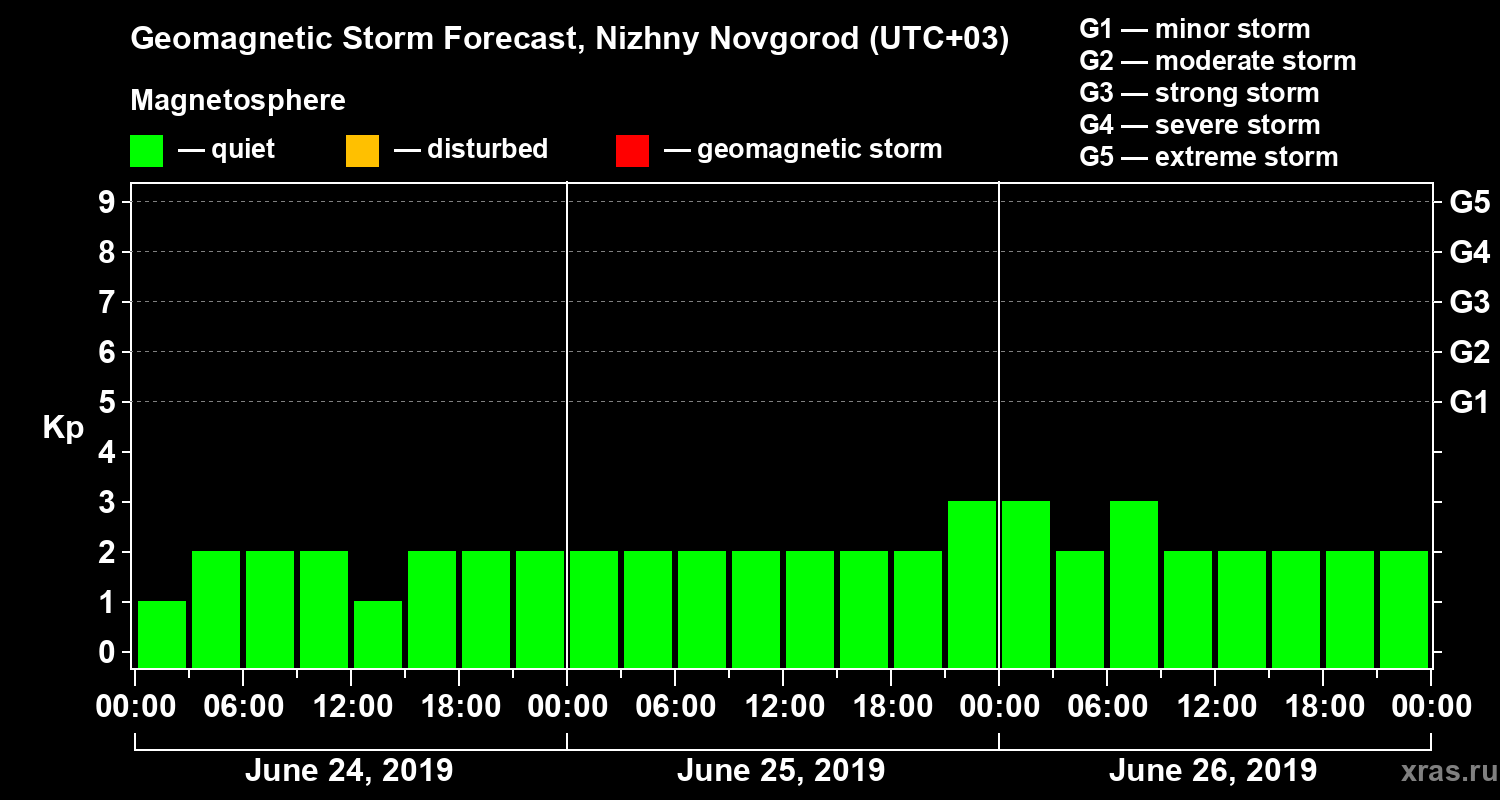 Geomagnetic activity forecast in Nizhny Novgorod — Jun 24, 2019