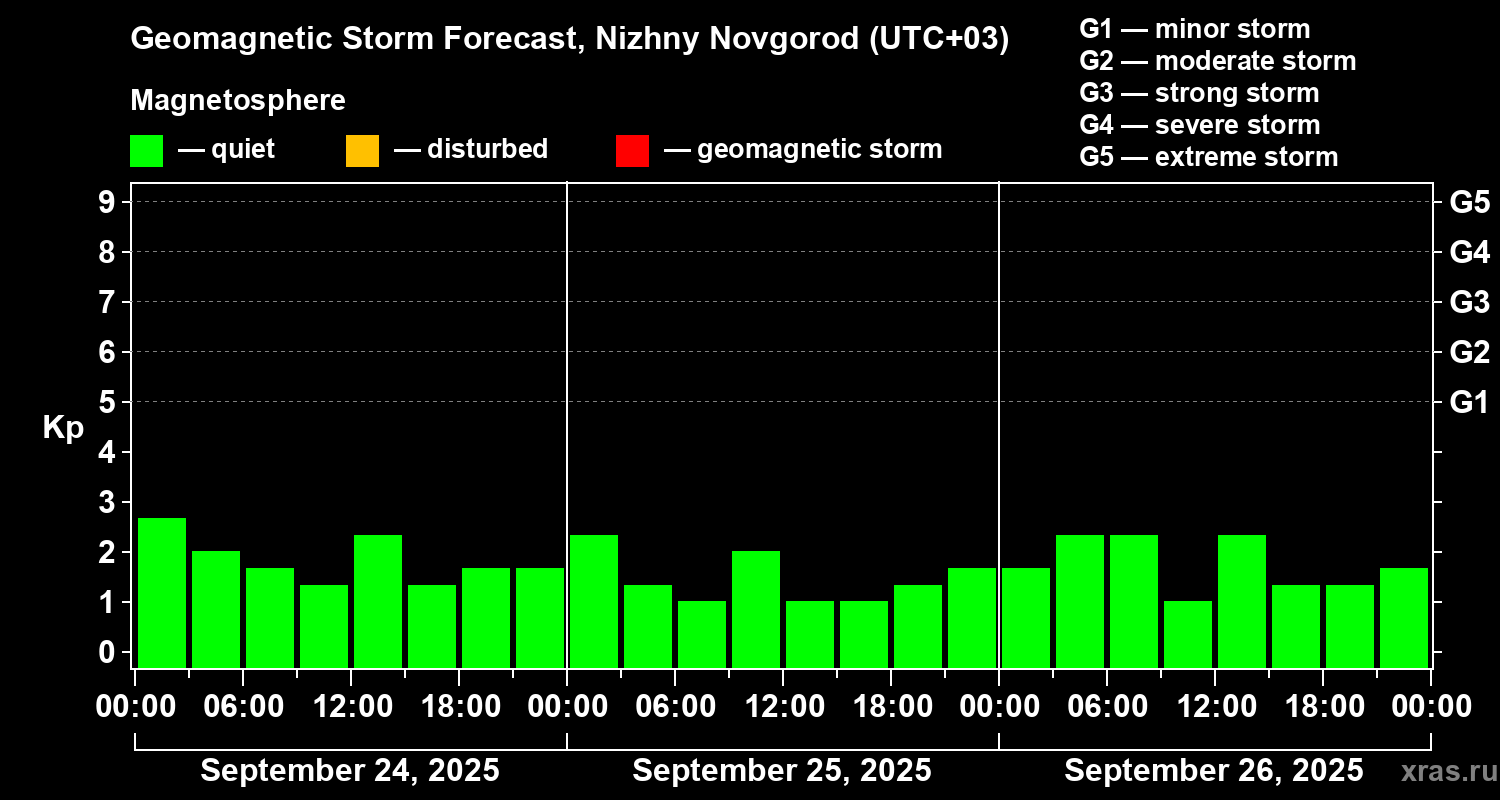 Geomagnetic storm forecast in Nizhny Novgorod for Sep 24, 2025