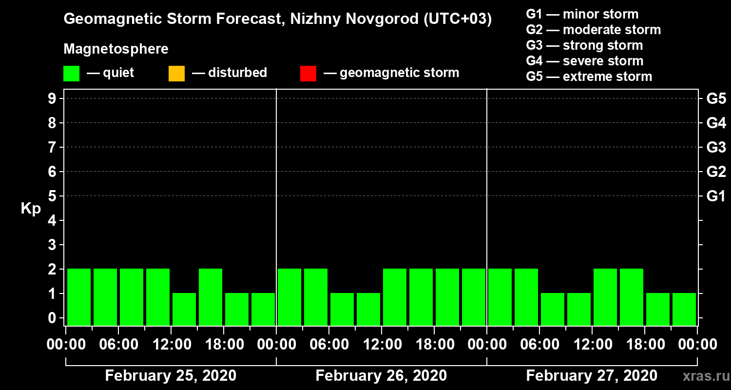 Geomagnetic activity forecast in Nizhny Novgorod — Feb 25, 2020