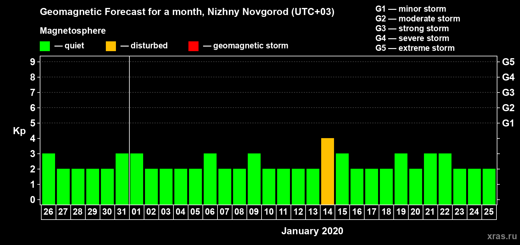 Geomagnetic activity forecast in Nizhny Novgorod — Dec 26, 2019