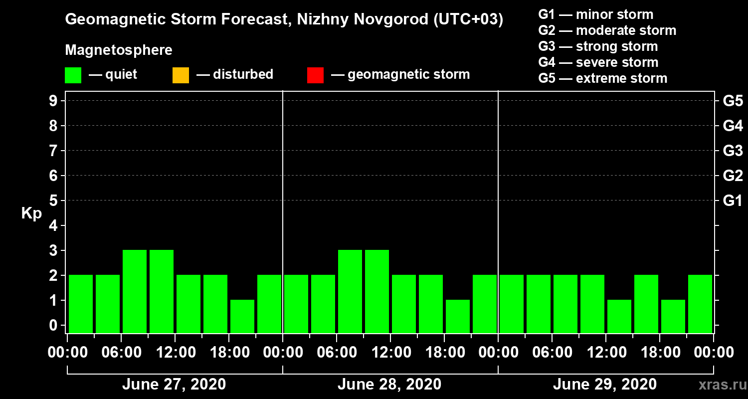 Geomagnetic activity forecast in Nizhny Novgorod — Jun 27, 2020