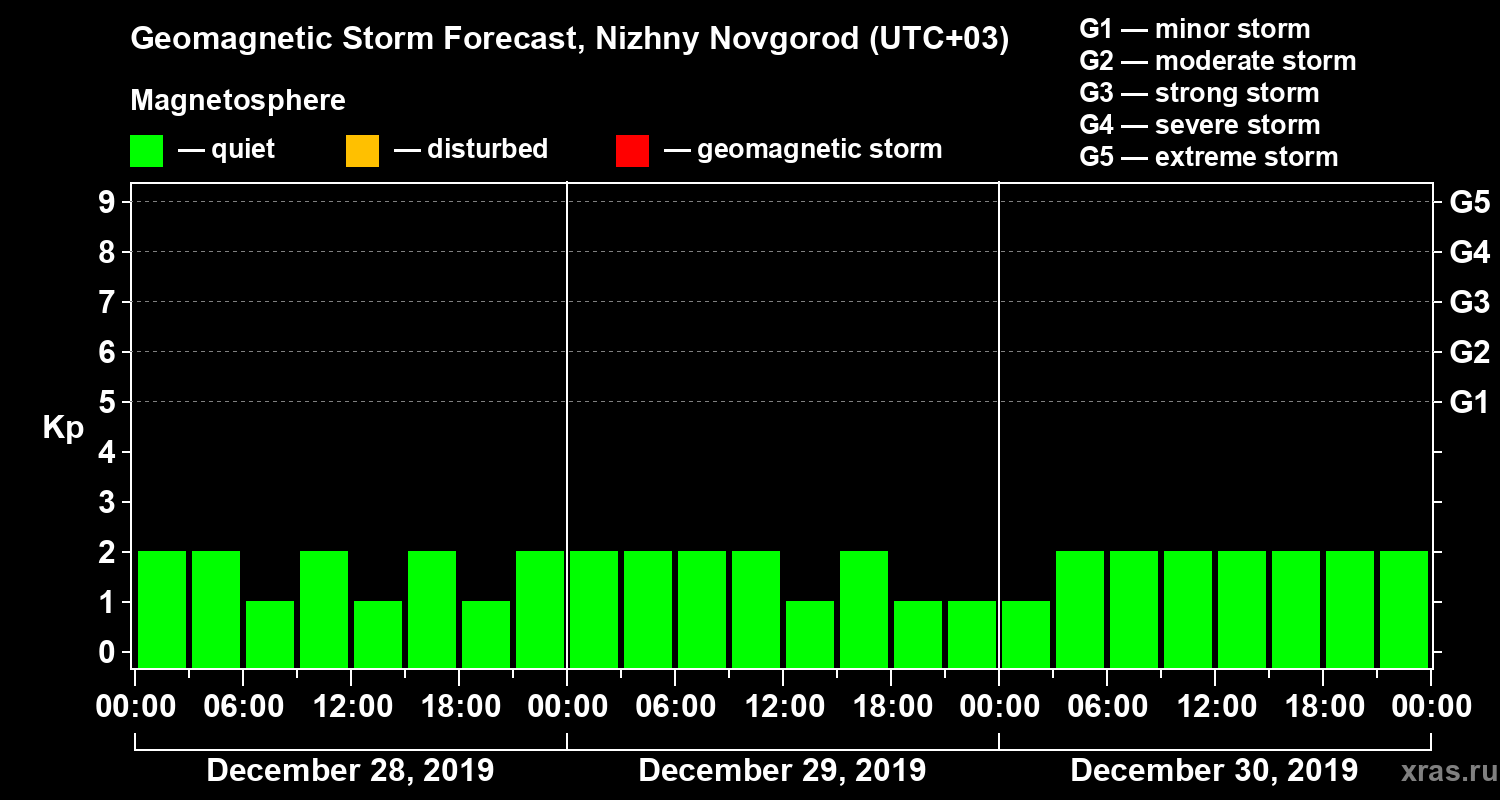Geomagnetic storm forecast in Nizhny Novgorod for Dec 28, 2019