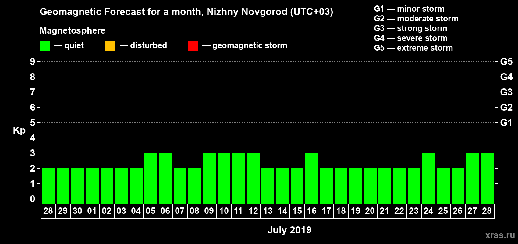 Geomagnetic activity forecast in Nizhny Novgorod — Jun 28, 2019