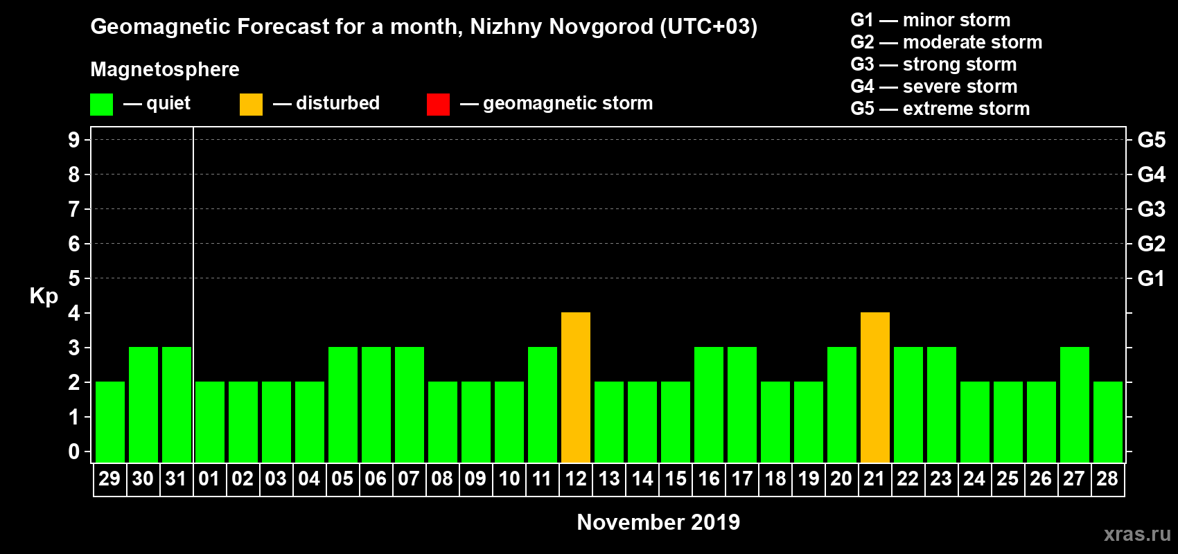 Geomagnetic storm forecast in Nizhny Novgorod for Oct 29, 2019
