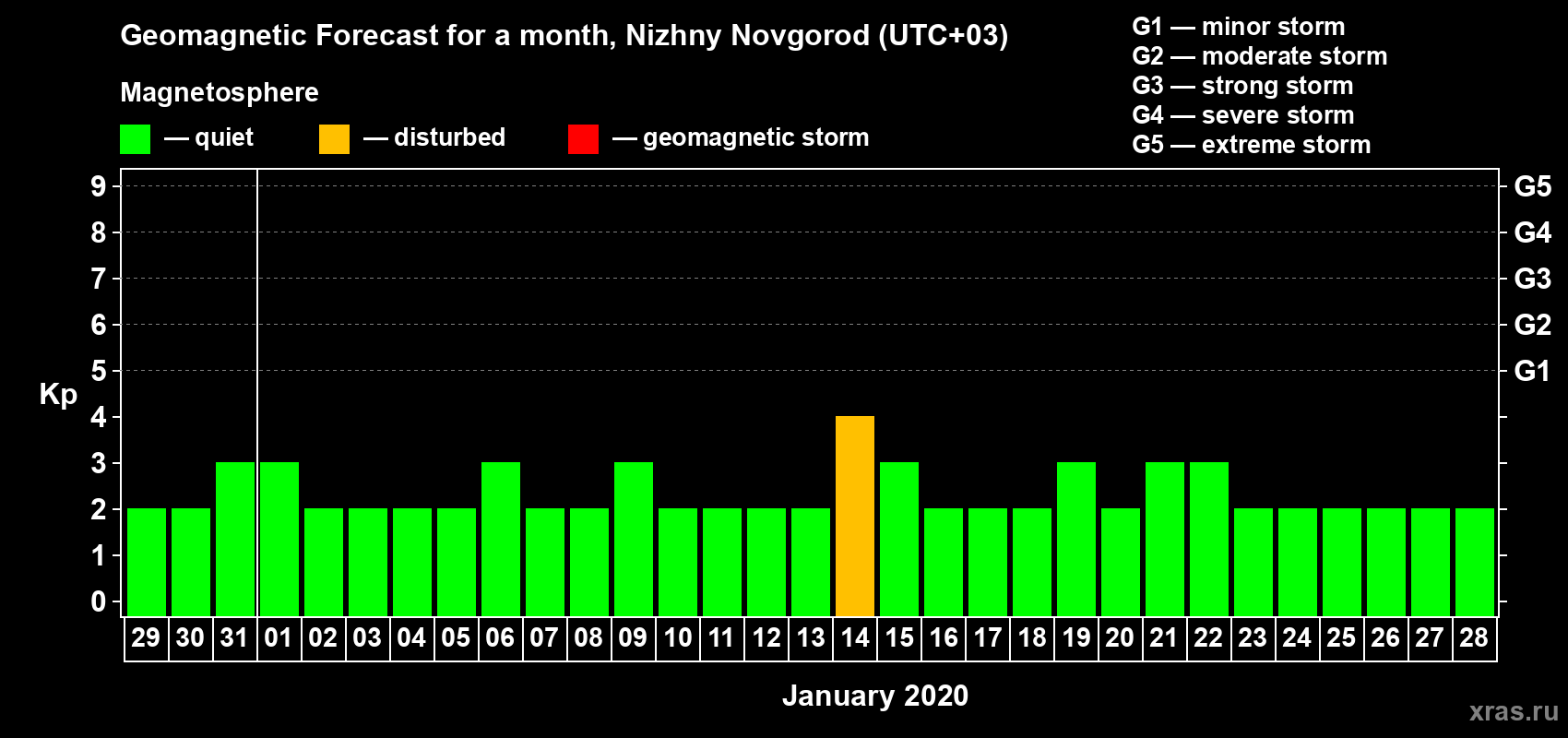 Geomagnetic activity forecast in Nizhny Novgorod — Dec 29, 2019