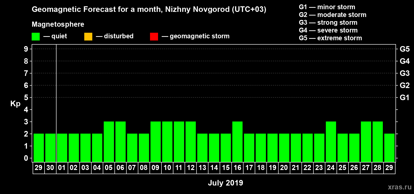 Geomagnetic activity forecast in Nizhny Novgorod — Jun 29, 2019