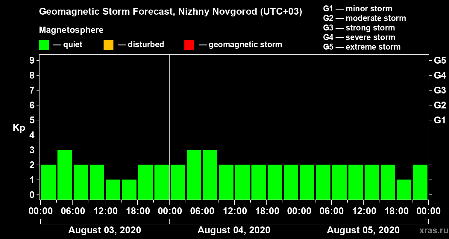 Geomagnetic activity forecast in Nizhny Novgorod — Aug 03, 2020