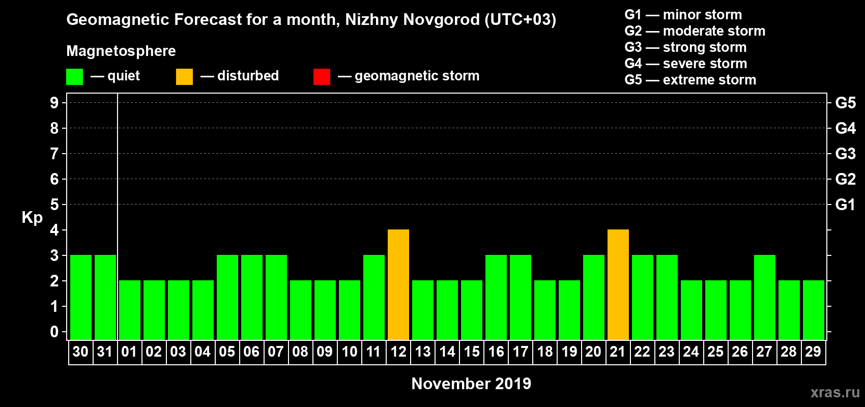 Geomagnetic activity forecast in Nizhny Novgorod — Oct 30, 2019
