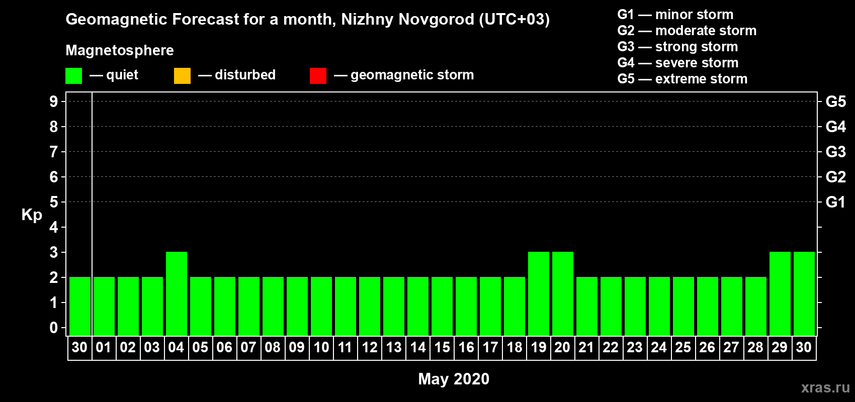 Geomagnetic storm forecast in Nizhny Novgorod for Apr 30, 2020