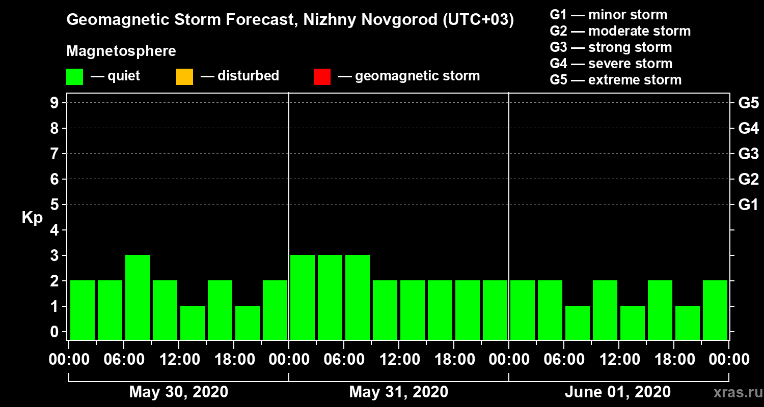 Geomagnetic activity forecast in Nizhny Novgorod — May 30, 2020