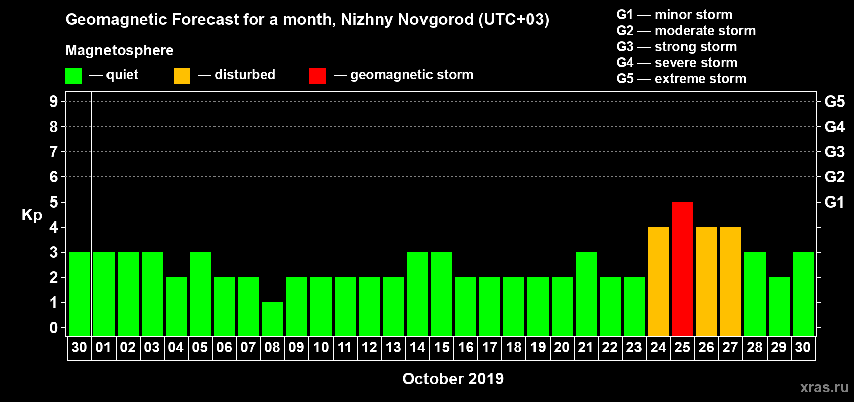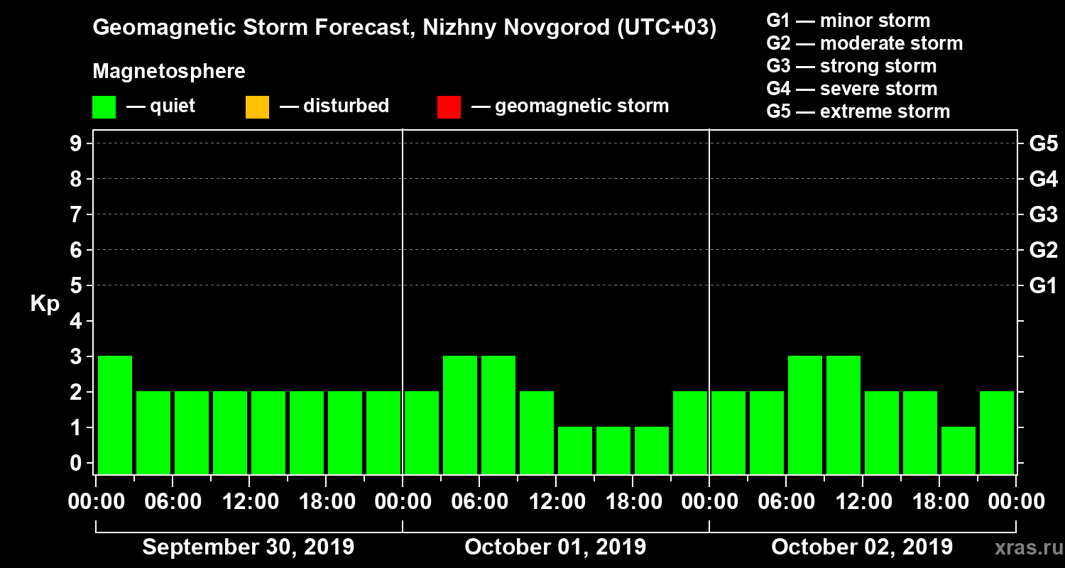 Geomagnetic activity forecast in Nizhny Novgorod — Sep 30, 2019