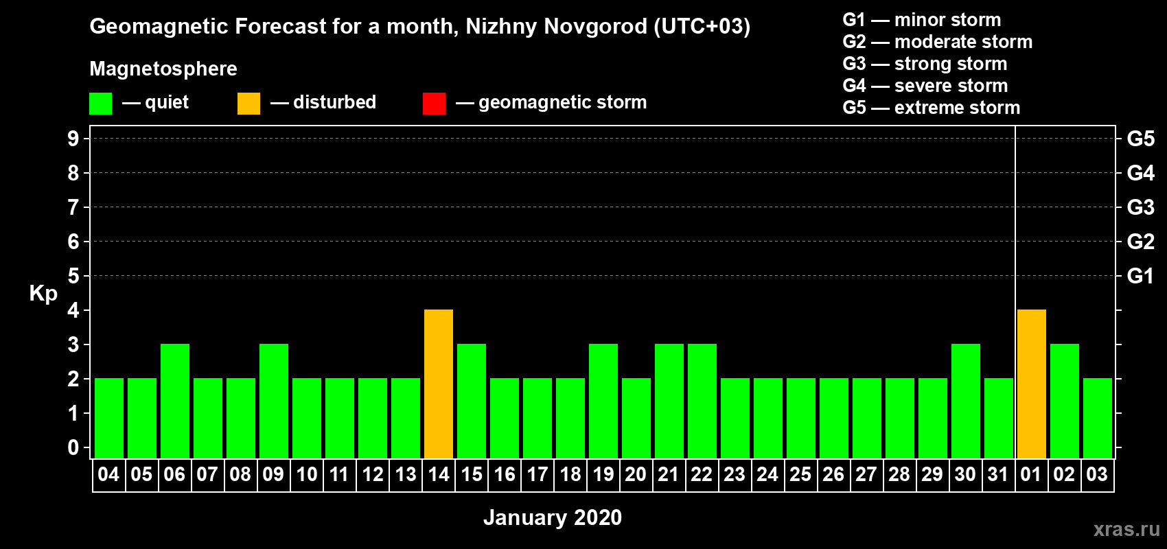 Geomagnetic activity forecast in Nizhny Novgorod — Jan 04, 2020