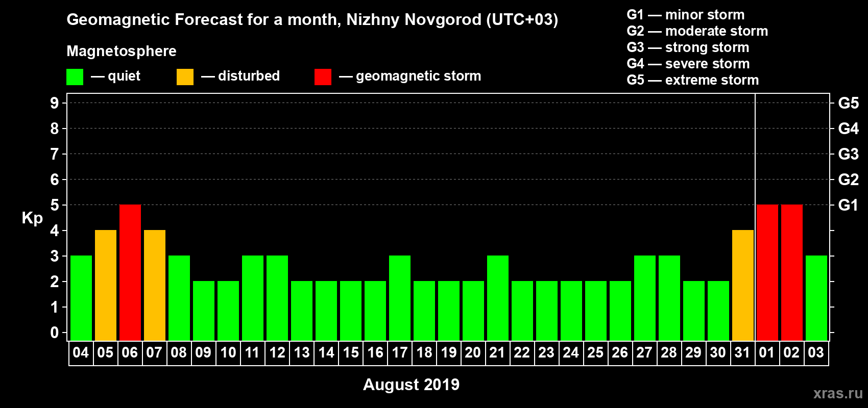 Geomagnetic activity forecast in Nizhny Novgorod — Aug 04, 2019