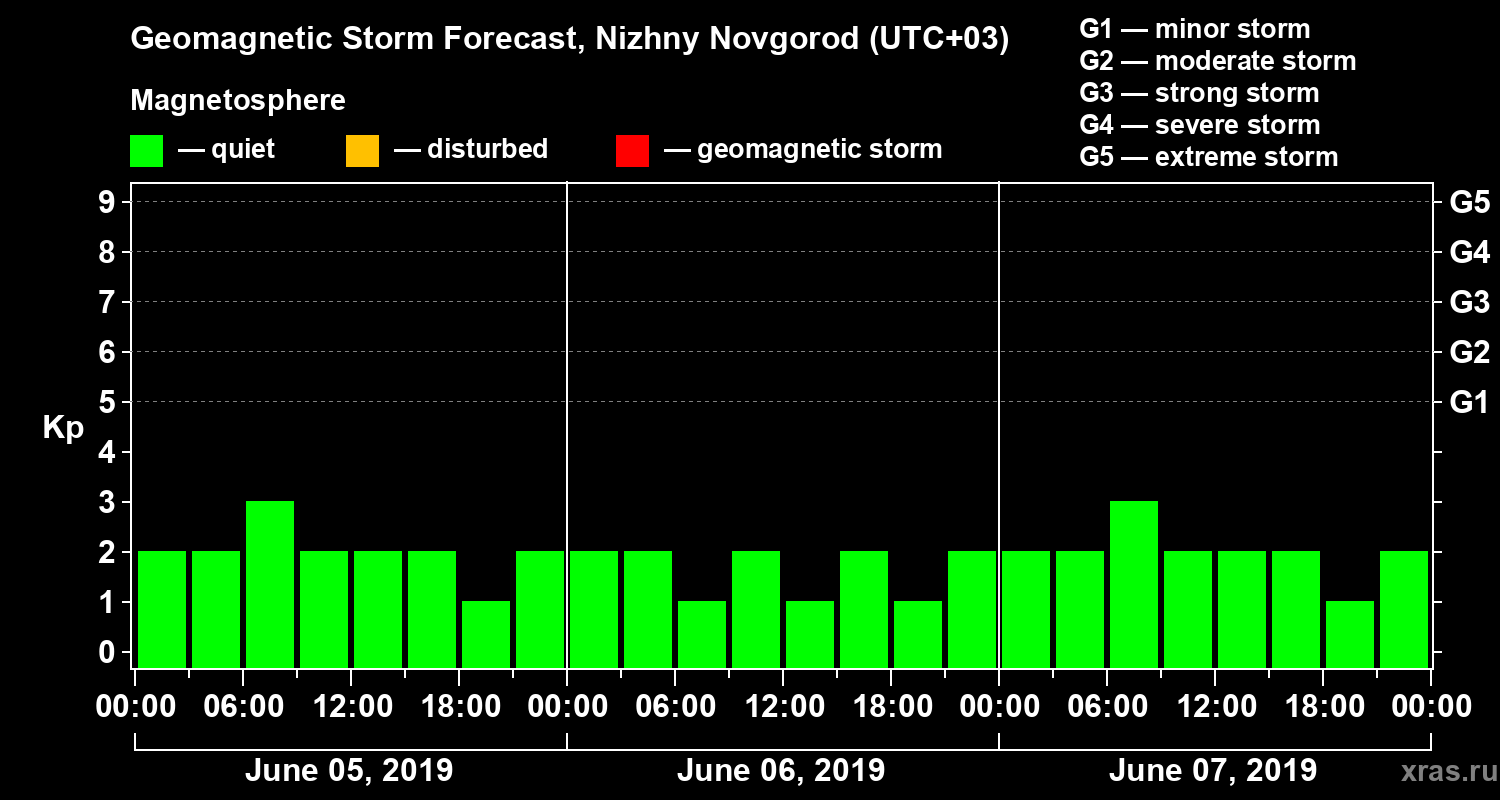 Geomagnetic storm forecast in Nizhny Novgorod for Jun 05, 2019