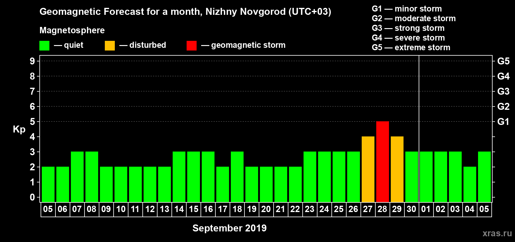 Geomagnetic storm forecast in Nizhny Novgorod for Sep 05, 2019