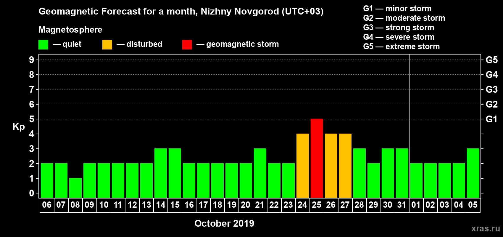 Geomagnetic activity forecast in Nizhny Novgorod — Oct 06, 2019
