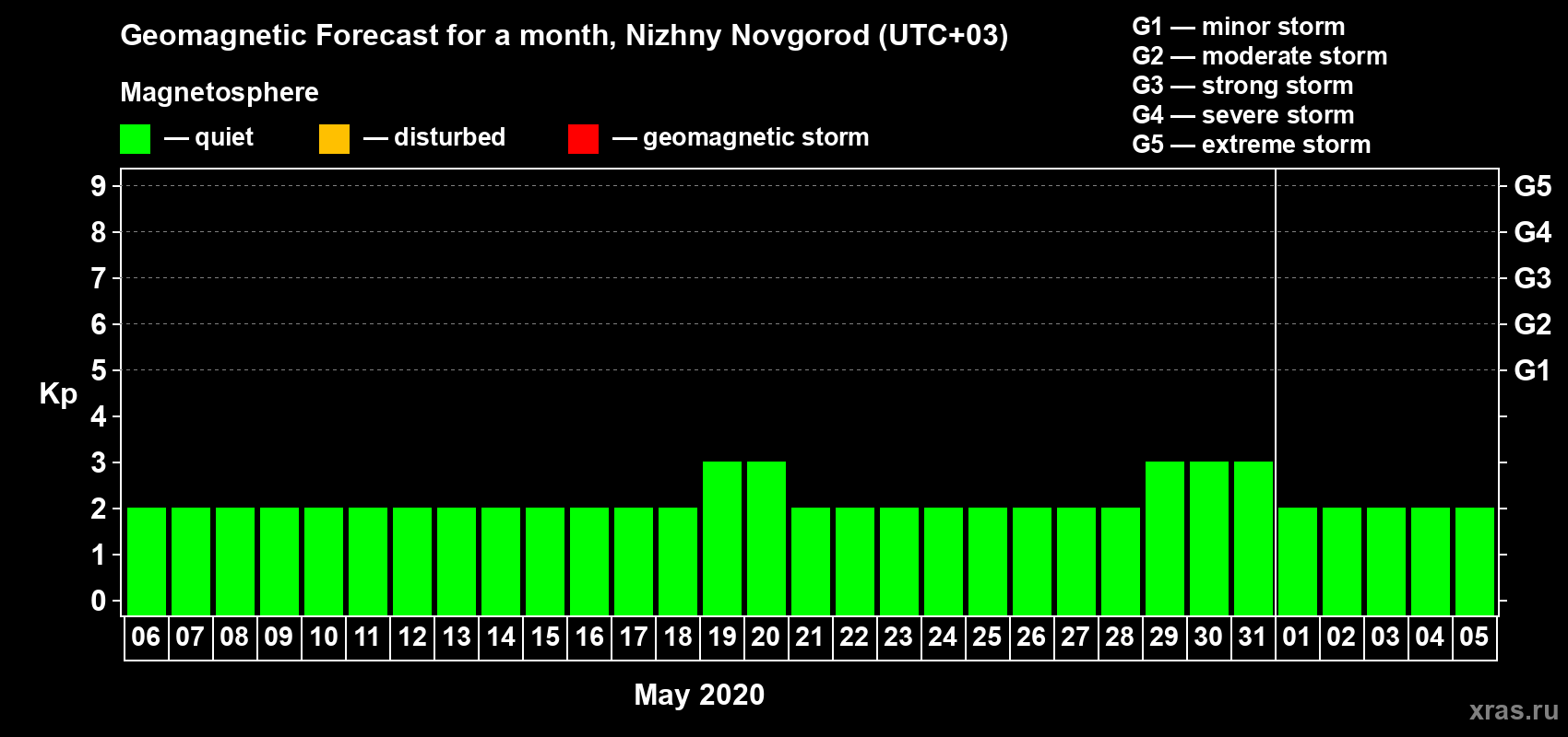 Geomagnetic activity forecast in Nizhny Novgorod — May 06, 2020