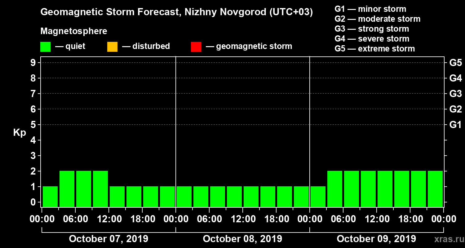 Geomagnetic activity forecast in Nizhny Novgorod — Oct 07, 2019