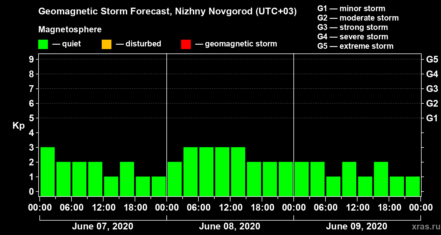 Geomagnetic activity forecast in Nizhny Novgorod — Jun 07, 2020