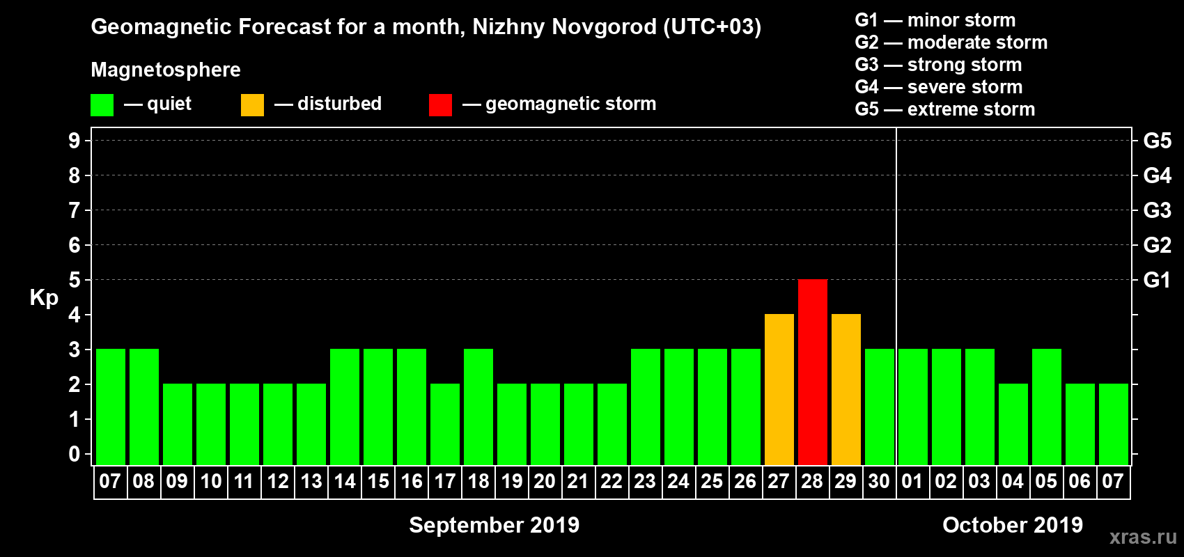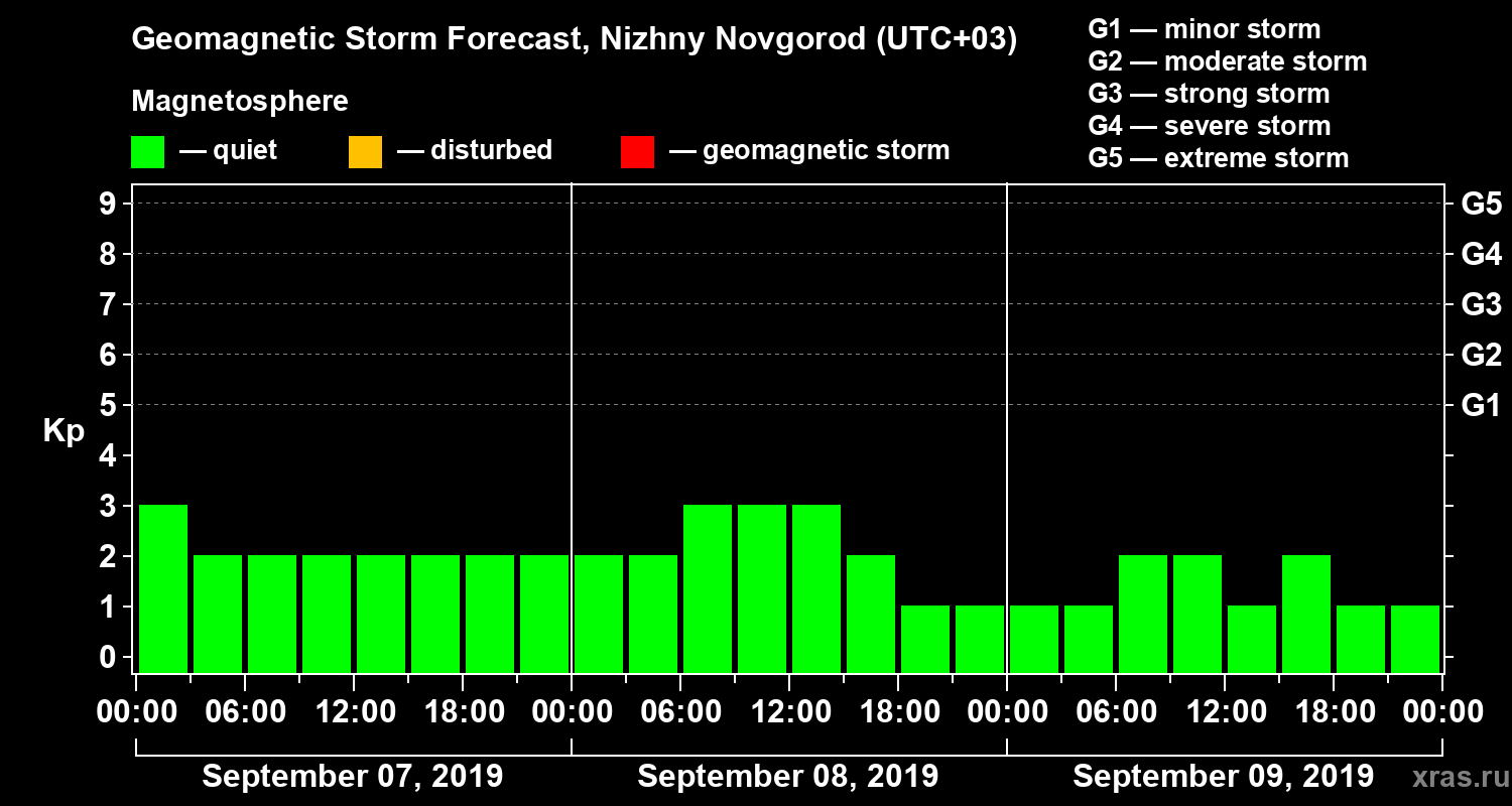 Geomagnetic activity forecast in Nizhny Novgorod — Sep 07, 2019