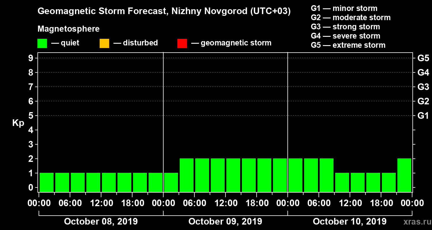 Geomagnetic activity forecast in Nizhny Novgorod — Oct 08, 2019