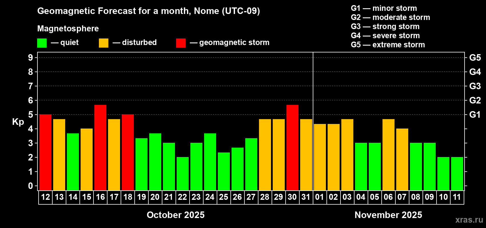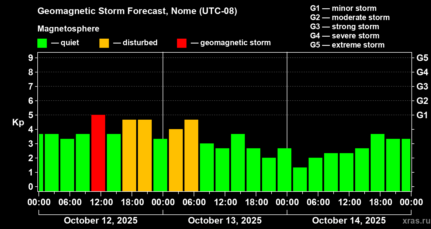 Geomagnetic storm forecast in Nome for Oct 12, 2025
