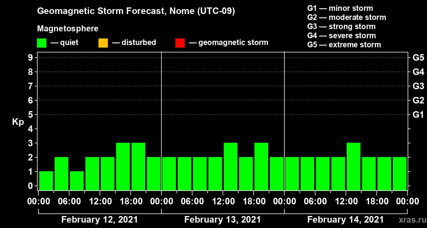 Geomagnetic storm forecast in Nome for Feb 12, 2021