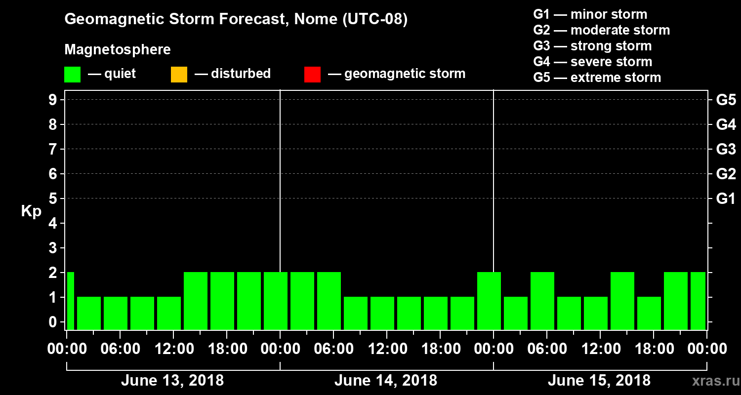 Geomagnetic storm forecast in Nome for Jun 13, 2018