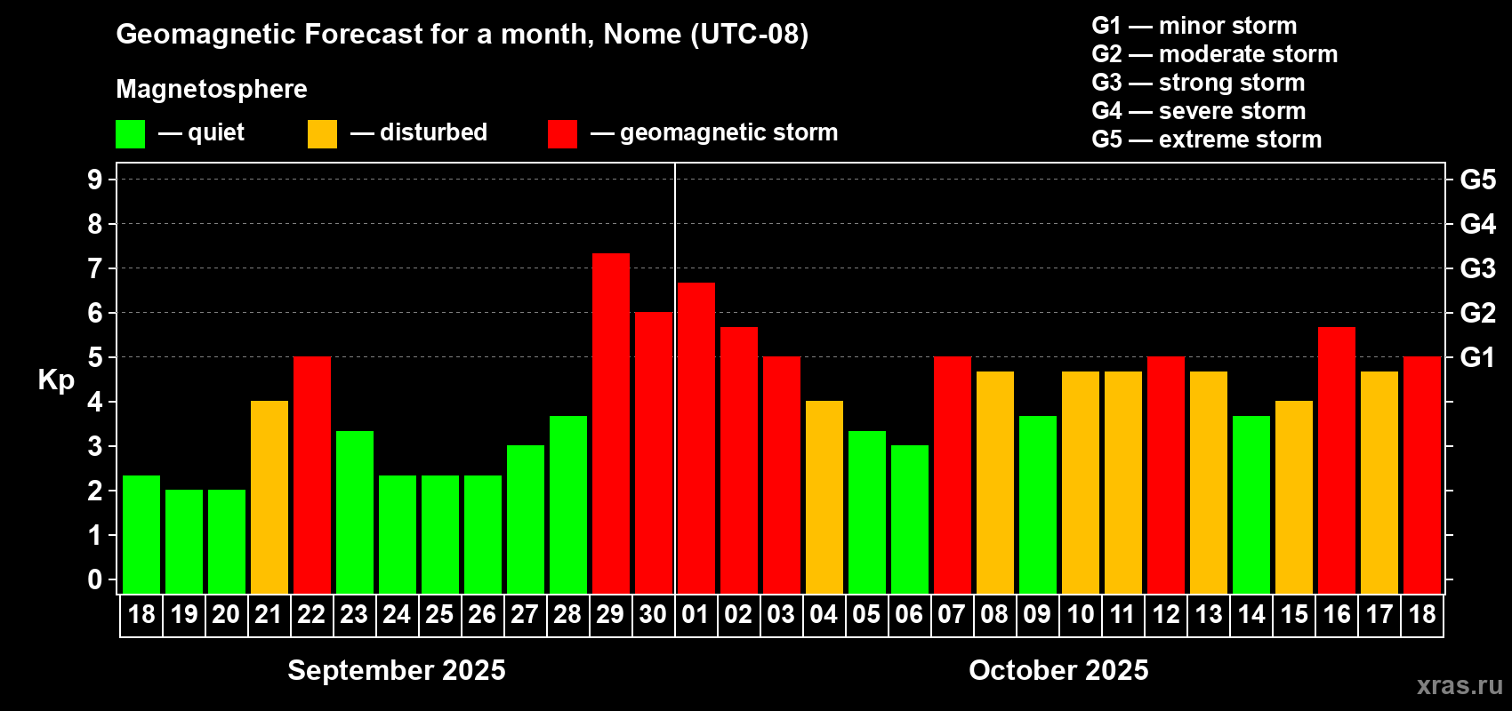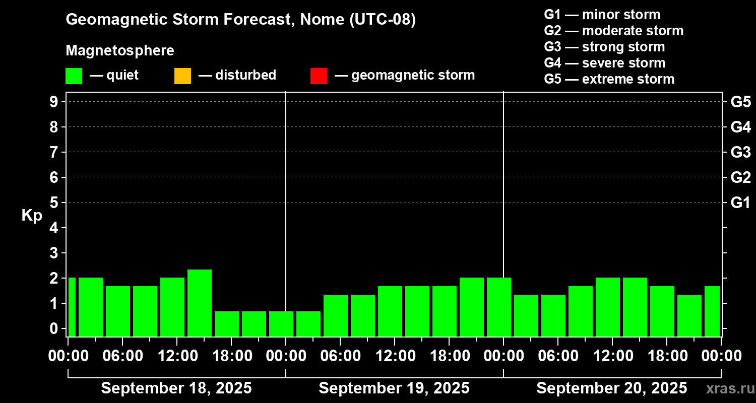 Geomagnetic storm forecast in Nome for Sep 18, 2025