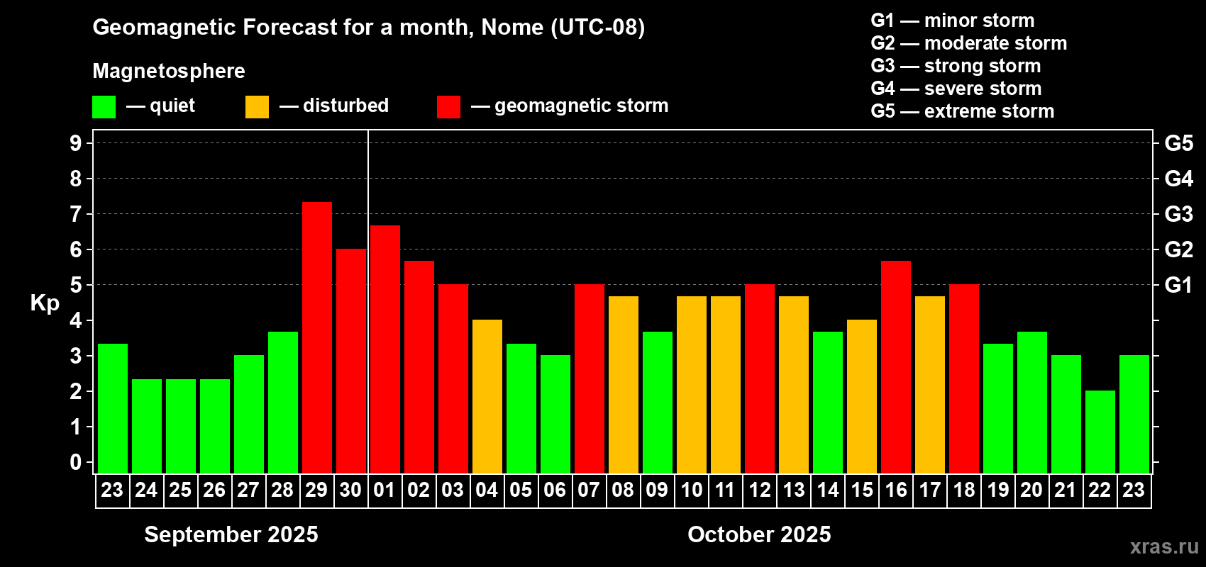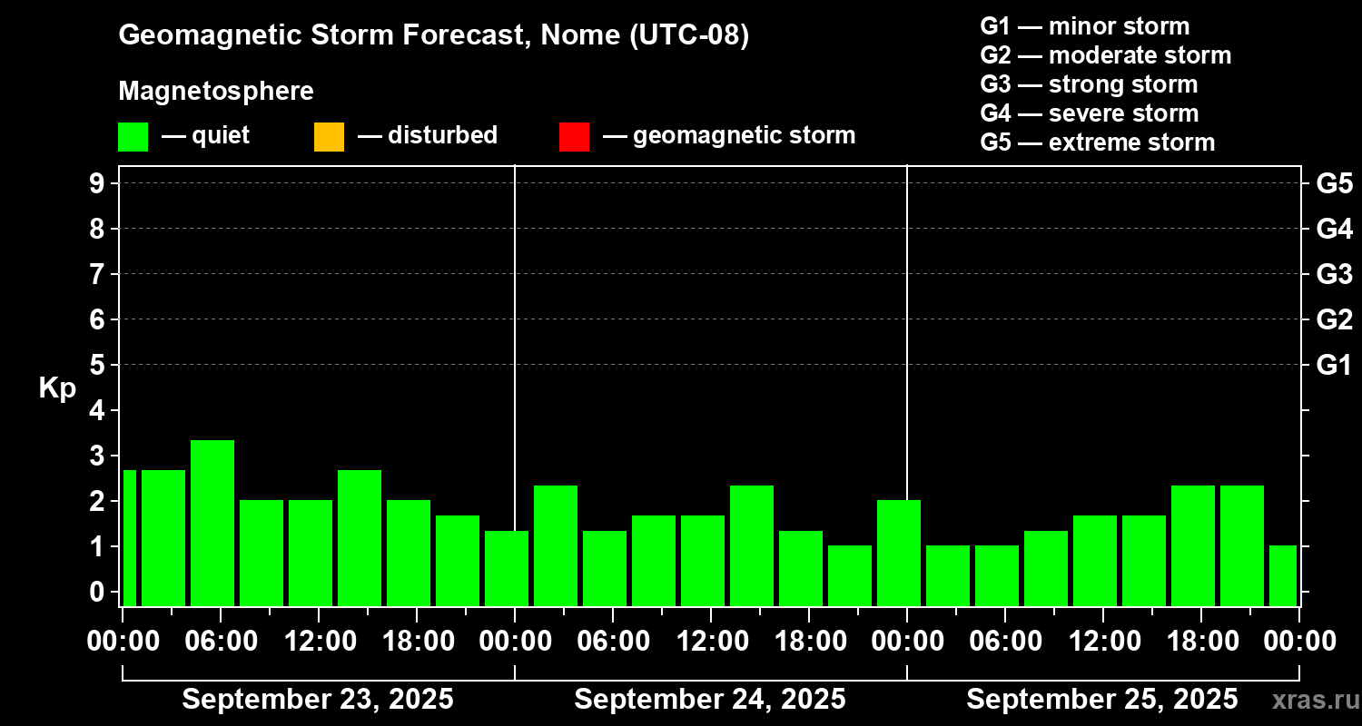 Geomagnetic storm forecast in Nome for Sep 23, 2025